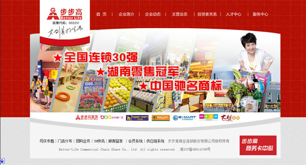 步步高(002251)商業(yè)連鎖股份有限公司始創(chuàng )于1995年,致力于成長(cháng)為中國領(lǐng)先的商業(yè)及服務(wù)業(yè)運營(yíng)商,公司于2008年6月19日在深圳證券交易所上市,股票代碼為002251。目前擁有步步高超市,步步高百貨(廣場(chǎng)),步步高云猴網(wǎng),步步高置業(yè)(步步高·新天地),步步高電器城,太楚餐飲,匯米巴便利店等業(yè)態(tài)。截至2014年底,多業(yè)態(tài)門(mén)店已遍布湘、贛、川、渝、桂、滇等省市。步步高(002251)多業(yè)態(tài)、線(xiàn)上線(xiàn)下齊頭并進(jìn)。由國際著(zhù)名鋼琴家、聯(lián)合國和平使者郎朗代言的商業(yè)地產(chǎn)“步步高·新天地”品牌目前已經(jīng)有十多個(gè)大型綜合體在動(dòng)工,其中70萬(wàn)方純商業(yè),擁有太空飛行館、真冰滑冰場(chǎng)、酷車(chē)樂(lè )園、云頂星河樂(lè )園等體驗性極強的項目的長(cháng)沙梅溪湖新天地是集團旗下最大的綜合體。2013年12月26日成立的云猴網(wǎng)(步步高商城),致力于打造中國第一的O2O生活平臺.