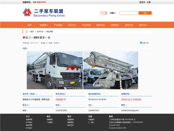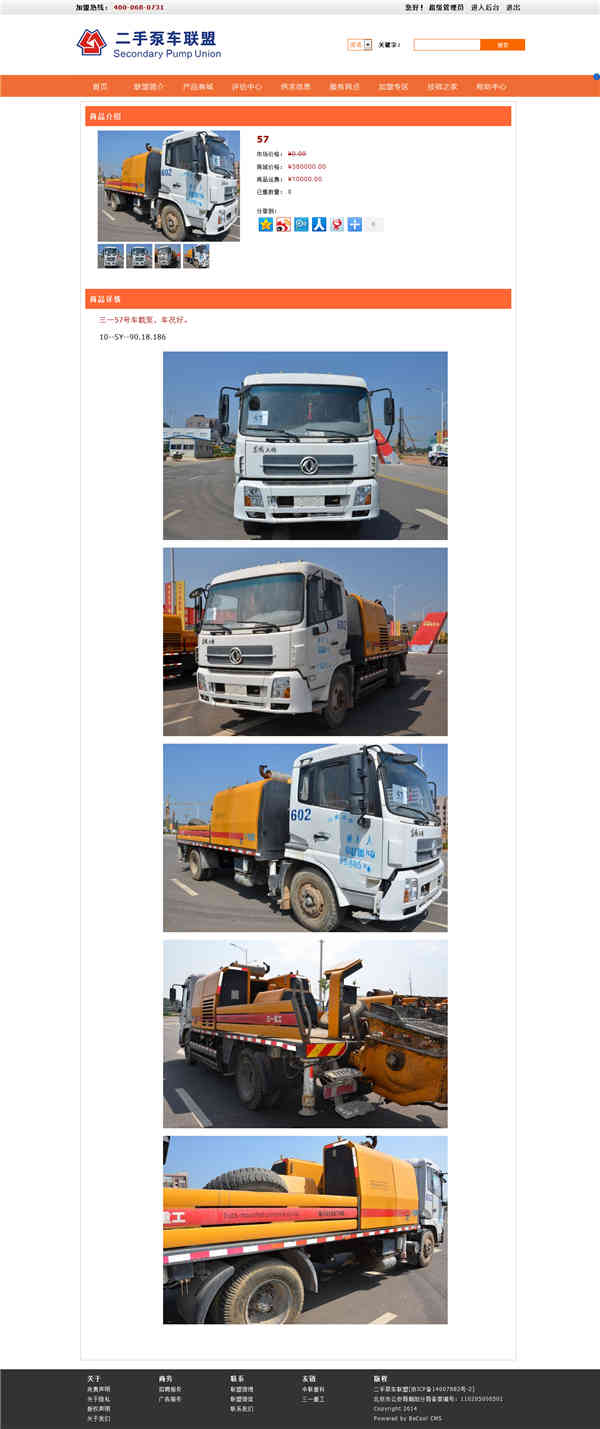 中國二手泵車(chē)聯(lián)盟網(wǎng)站“商品詳情”頁(yè)面效果