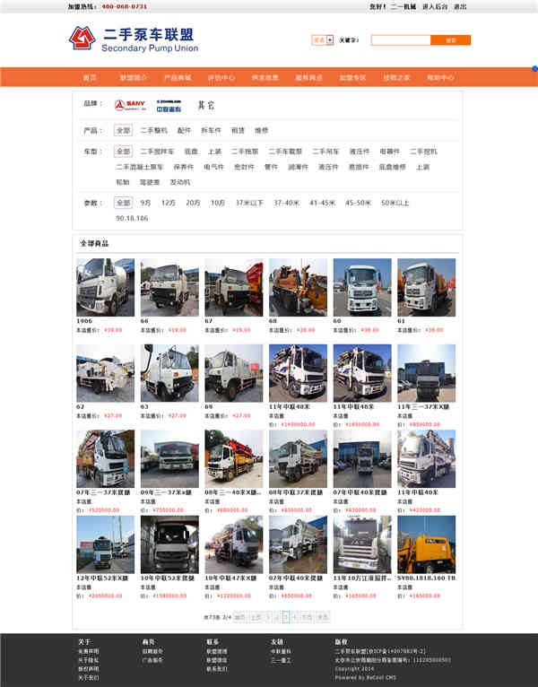 中國二手泵車(chē)聯(lián)盟網(wǎng)站首頁(yè)效果