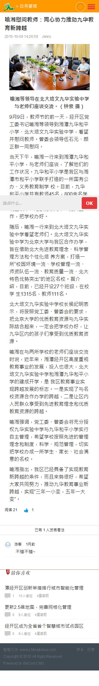 智慧九華綜合管理中心官網(wǎng)移動(dòng)版文章終顯頁(yè)效果圖