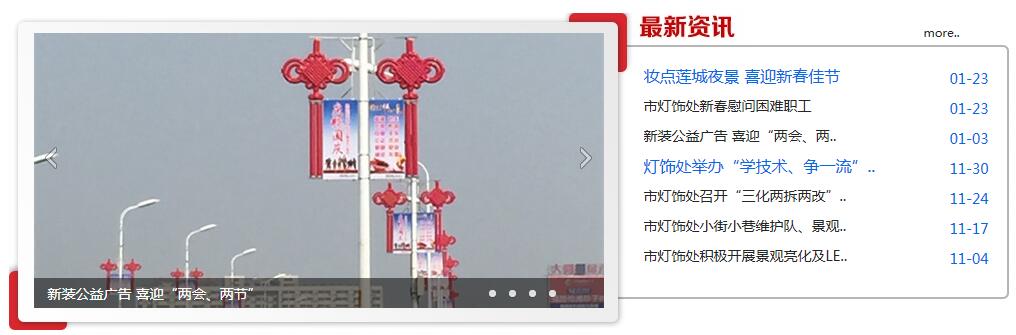 湘潭市燈飾管理處官方網(wǎng)站全權交由湘潭貝一科技有限公司設計制作。以燈飾、亮麗為主題,將視覺(jué)標志化,用視覺(jué)來(lái)增加官方的識別度,讓大眾在第一眼后就能清晰的辨別出這是一個(gè)以燈飾為主題的官方網(wǎng)站,精美的美工小細節圖如下: