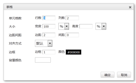 3) 行數、列數、邊距間距、對齊方式、邊框色、背景色按實(shí)際需要進(jìn)行選擇即可。