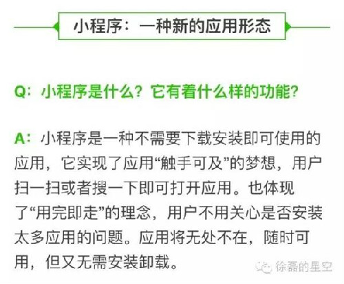 目前為止,關(guān)于“小程序”的信息還不是很多,但結合官方的表述已經(jīng)可以看到一些端倪了。當然,只要沒(méi)有最后塵埃落定。一切都還只是猜測。