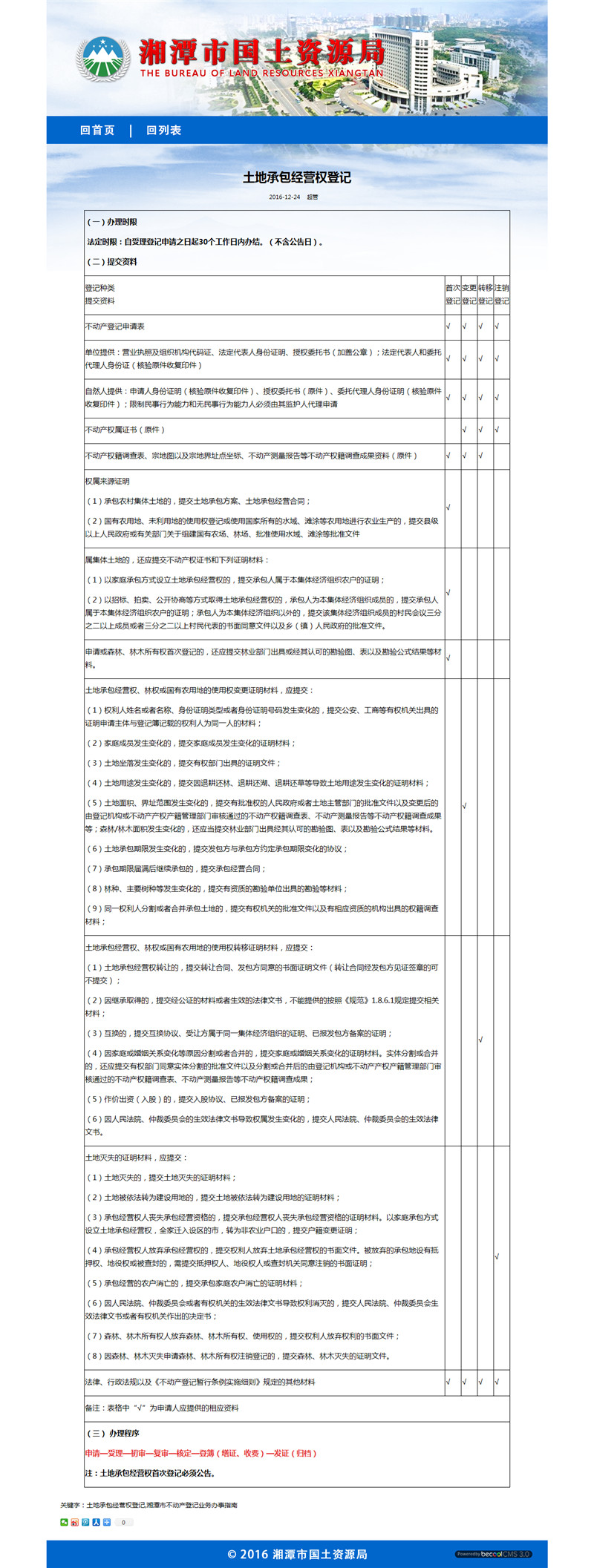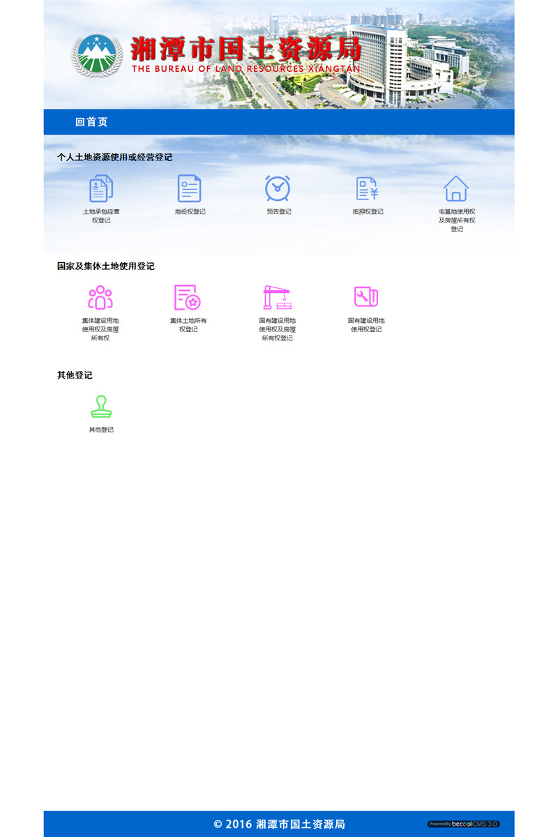 湘潭市國土資源局成立于2001年,由原湘潭市國土管理局、地質(zhì)礦產(chǎn)管理局合并組建而成,內設18個(gè)職能科室、12個(gè)直屬事業(yè)單位,轄雨湖、岳塘、高新3個(gè)分局和8個(gè)國土資源中心所,負責全市土地、礦產(chǎn)和測繪管理工作。