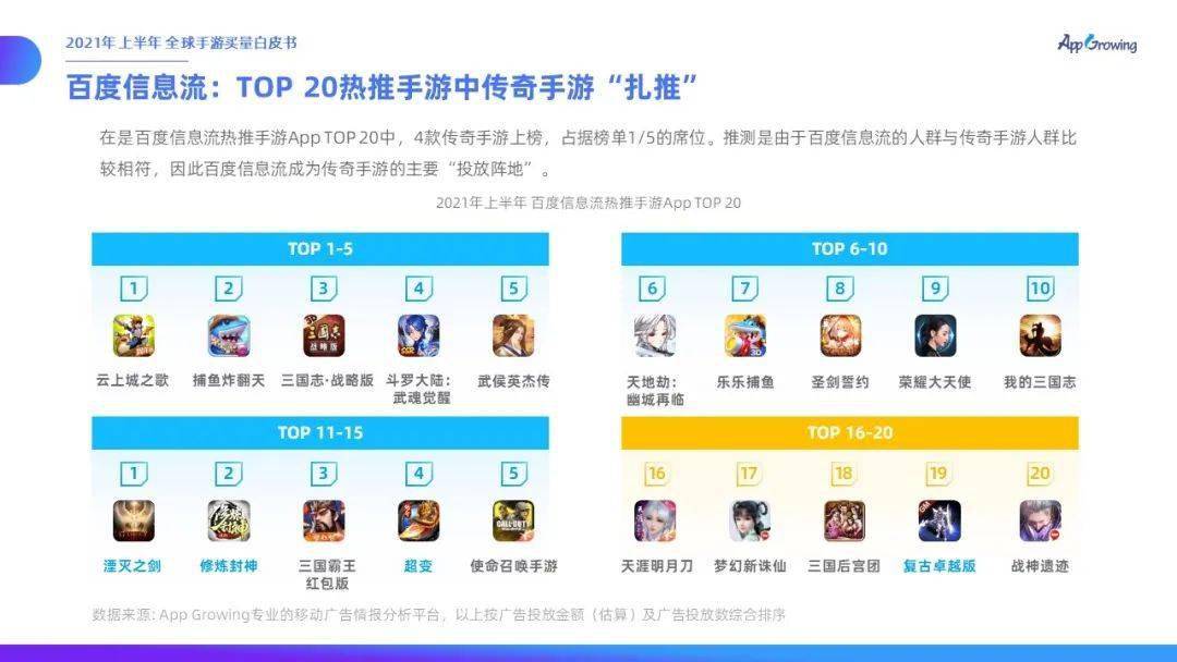 傳奇手游熱推榜前20中,共有10款新投放手游上榜,傳奇手游的玩家忠誠度較高,雖然是新手游但是畫(huà)面風(fēng)格及玩法跟舊版游戲相似度較高。