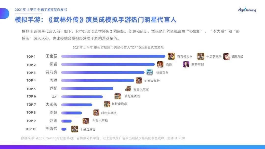 選取2021年上半年的重點(diǎn)投放風(fēng)格休閑&網(wǎng)賺、模擬、戰爭、三國、傳奇、魔幻、二次元,分析其明星代言人、熱門(mén)文案套路及熱門(mén)素材。